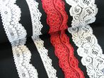 Oferujemy koronki elastyczne i stabilne renomowanych producentów, o szerokości od 1 do 32cm, oraz koronki szerokie tzw. „pleny” w szerokościach do 180cm. Są to koronki typu Rachel, Jacquardtronic, Textronic, Liwers. Klienci mają możliwość kupna koronek, bezpośrednio z regałów magazynowych, na których posiadamy dużą różnorodność wzorów, jak również wyboru koronek z katalogów, prezentujących najnowsze wzornictwo, oraz kolorystykę.